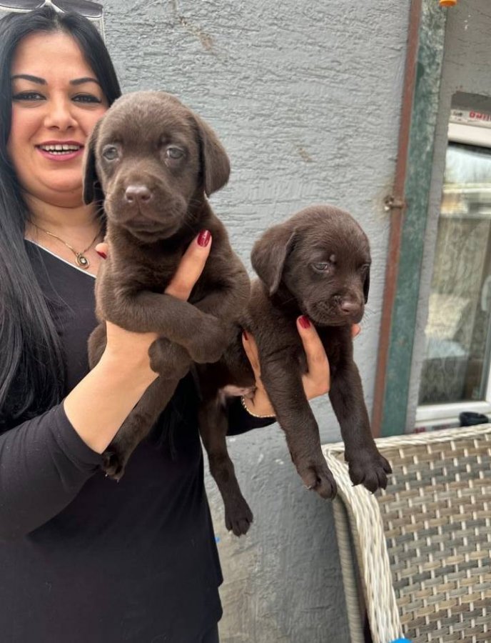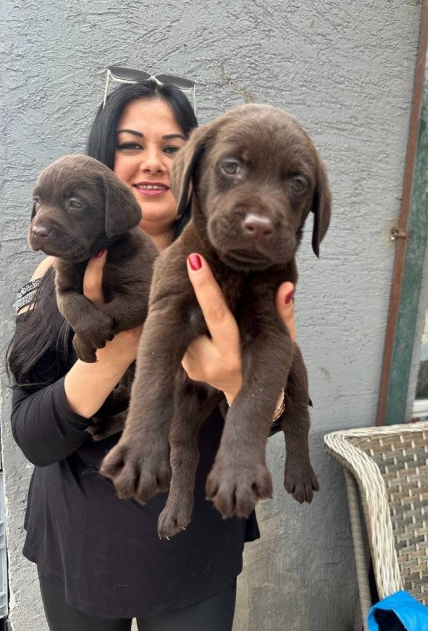İki aylık, aşıları tam Bursa Osmangazi çıkışlı çikolata Labrador yavrularım.