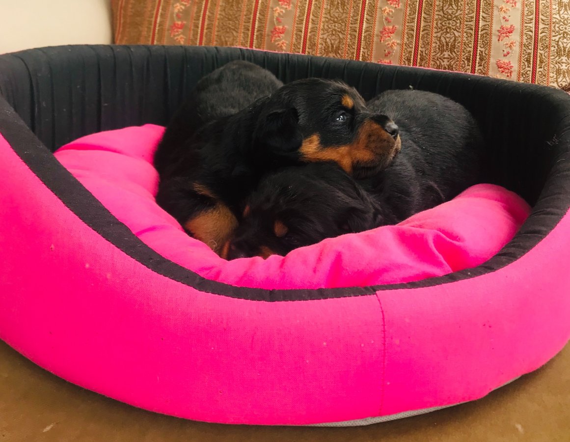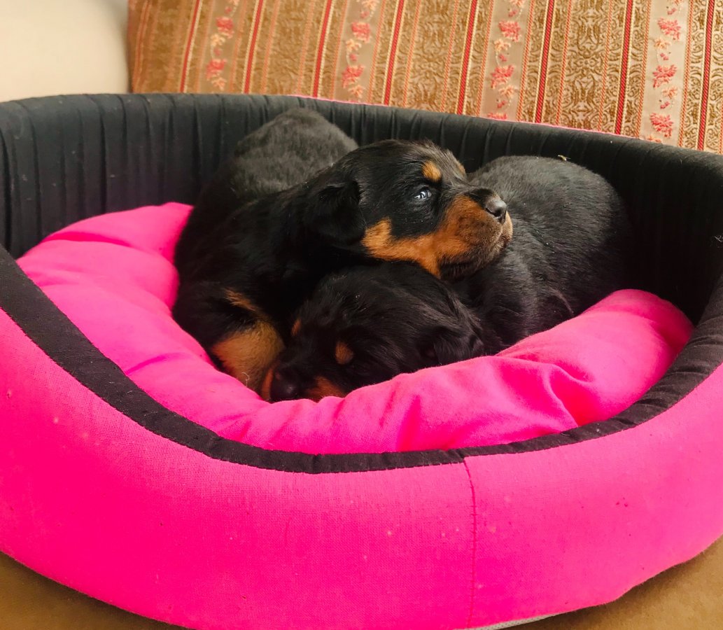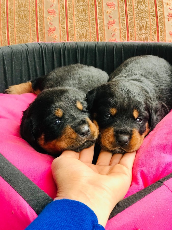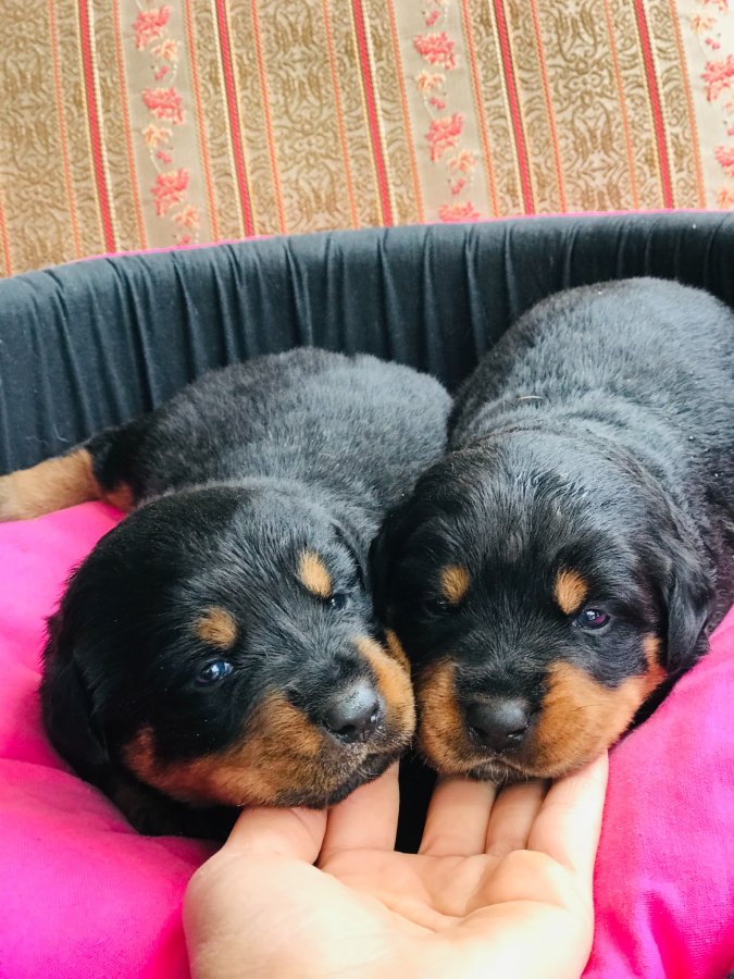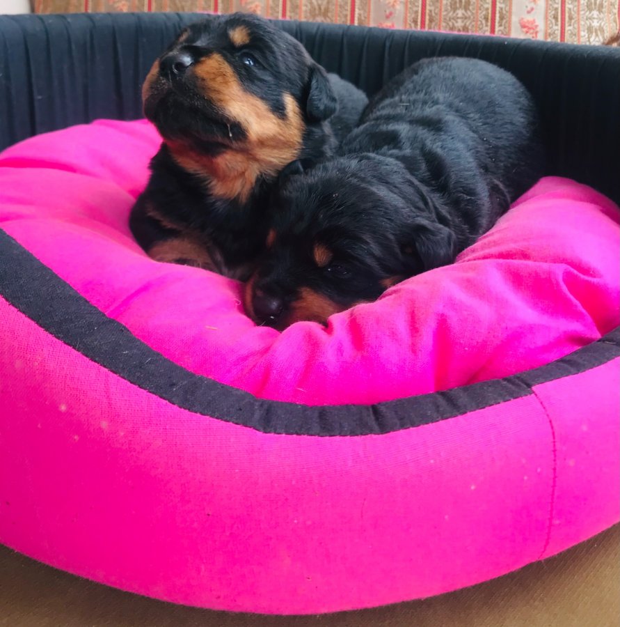 Kendi çiftliğimden, safkan Rottweiler yavrularım 2 aylık ve ilk aşıları tam. Anne-baba seçmeli, hem dişi hem erkek var.