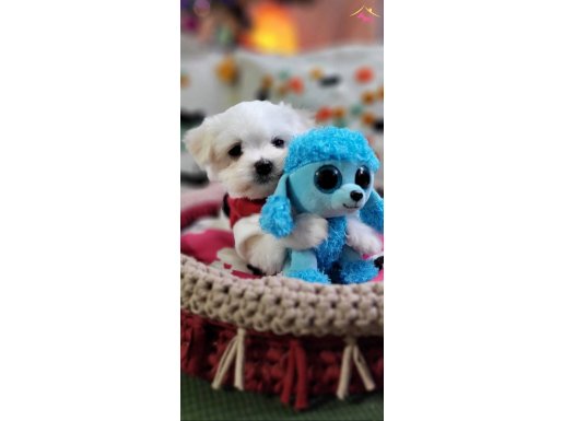 Şecereli anne babanın uzun saçlı beyaz inci tanesi Maltese Terrier bebekleri küçücük teacup anatomisi ile kartpostaldan fırlamış gibi.