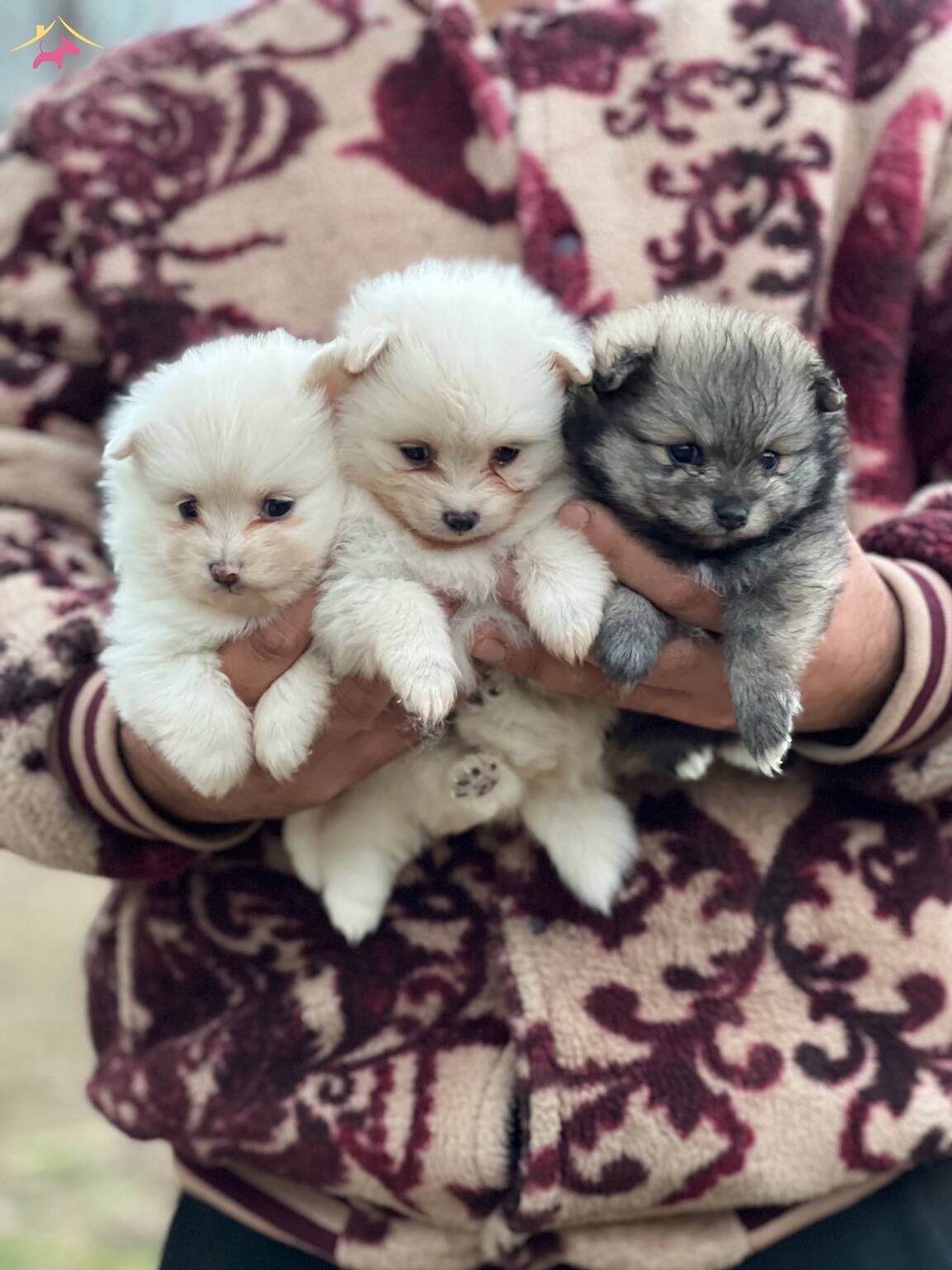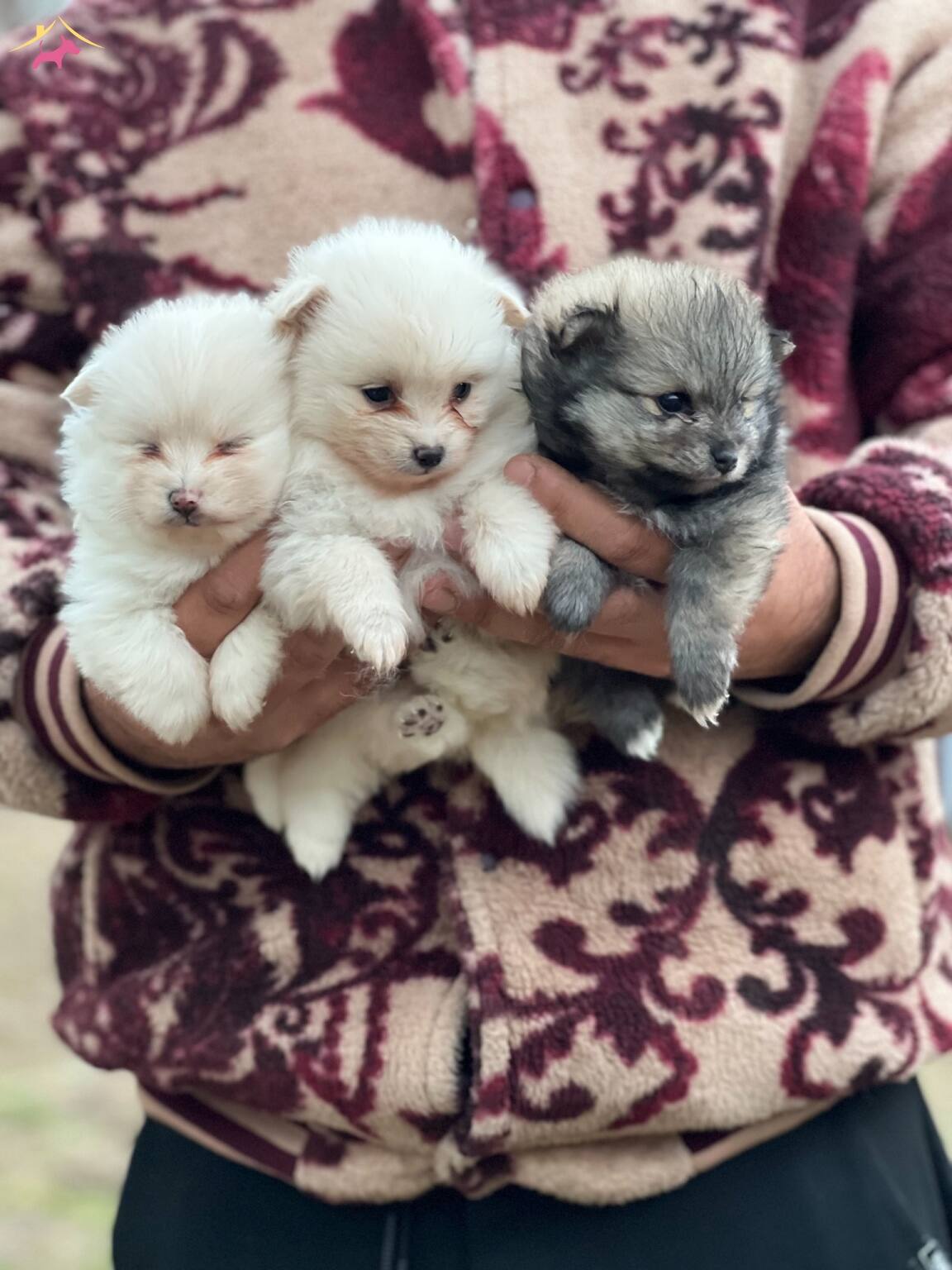 annesi ise pomerian spitz yani burun yapısı birazcık sivri. Kesinlikle alman spitzlerle karıştırılmasın. Boyutları ufak ve burun yapısı orta basıklıkta.