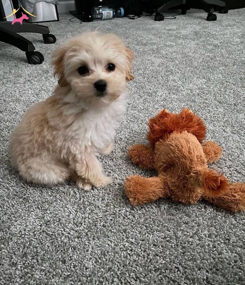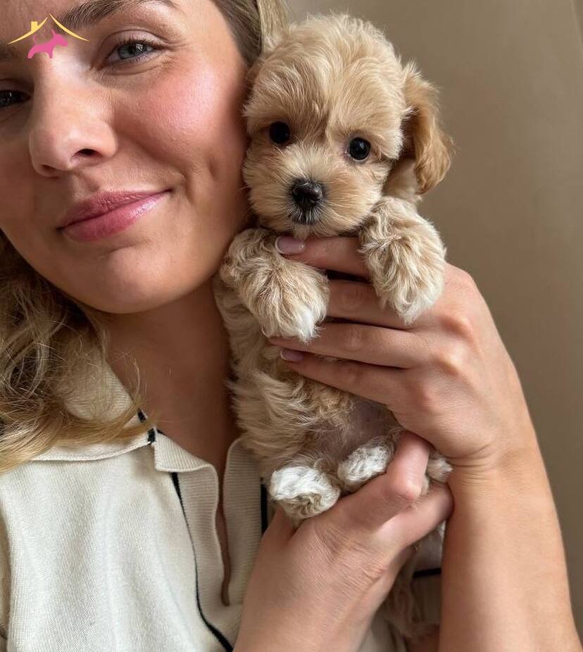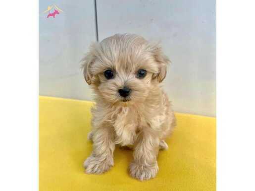 Koyu renk gözleri ve güzelliğini tamamlayan harika tüy yapısı ile Poodle ayarında Maltipoo bebeklerimiz apricot renk olup ender bulunan güzelliğiyle görenleri mest ediyor.