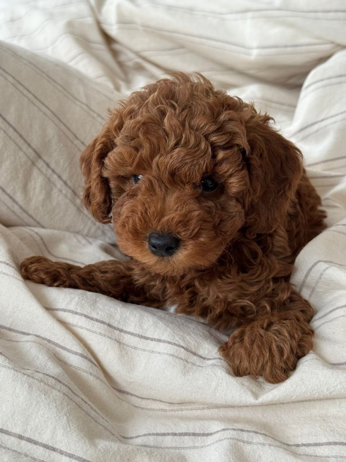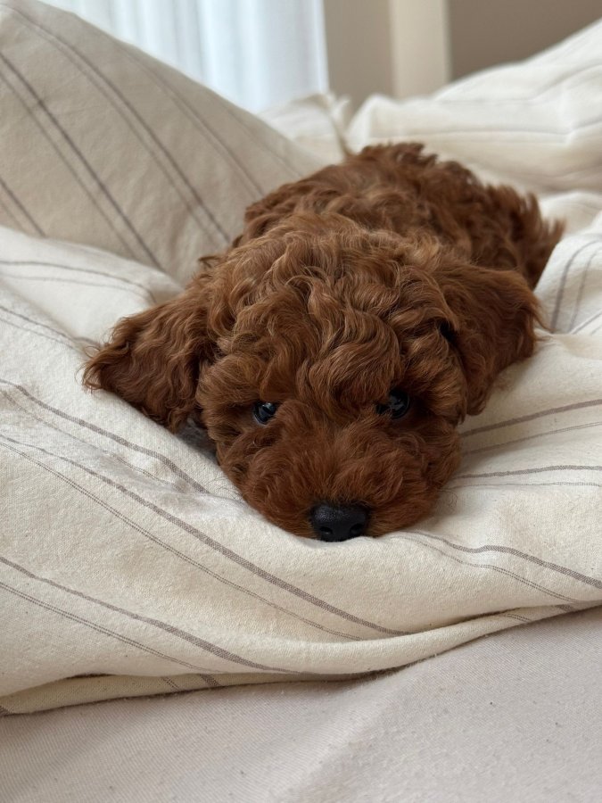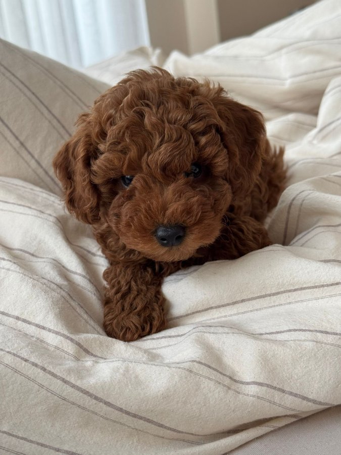 Kıvırcık kürklü, pofuduk çikolata suratlı red brown toy poodle yavrumuz anne sütünü tam aldı.