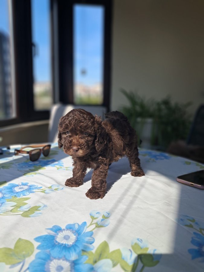 Evimizin neşesi, ipek dokulu kıvırcık tüylü 2 aylık dişi red ve çikolata Toy Poodle yavrularımız yeni yuvalarını bekliyor. Bu minikler hayatınıza biyolojik ritm ve sonsuz sadakat katın. Detaylar için WP’den mesaj gönderiniz.