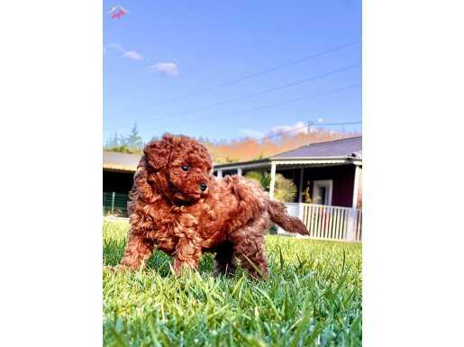 Eşi benzeri olmayan redbrown oyuncak boy Poodle bebeklerimiz ruhsatlı çiftliğimizde modern bir akademide eğitimlerini almış olarak sizleri bekliyor.