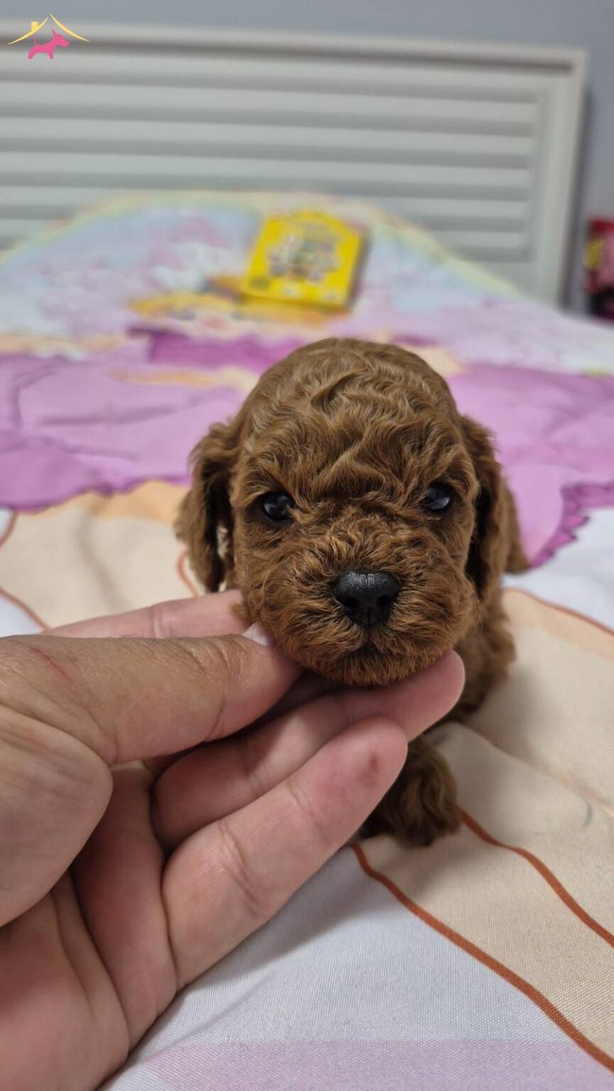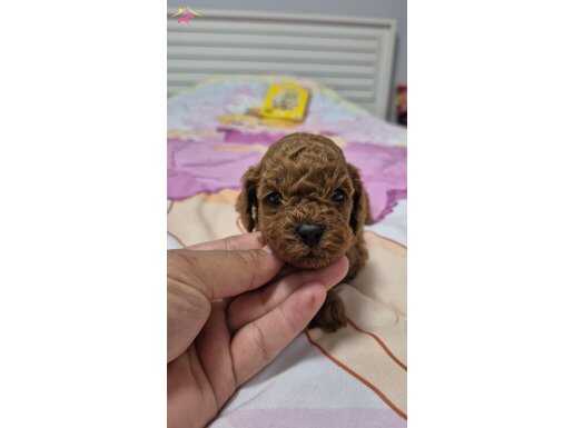Anne altından teslime hazır safkan Poodle bebekler ev ortamında özenle büyütülmektedir. 45 günlük olan yavruların iç parazit uygulamaları tamamlanmış olup ipeksi kızıl kürklü bu can dostları yeni ailelerini beklemektedir.