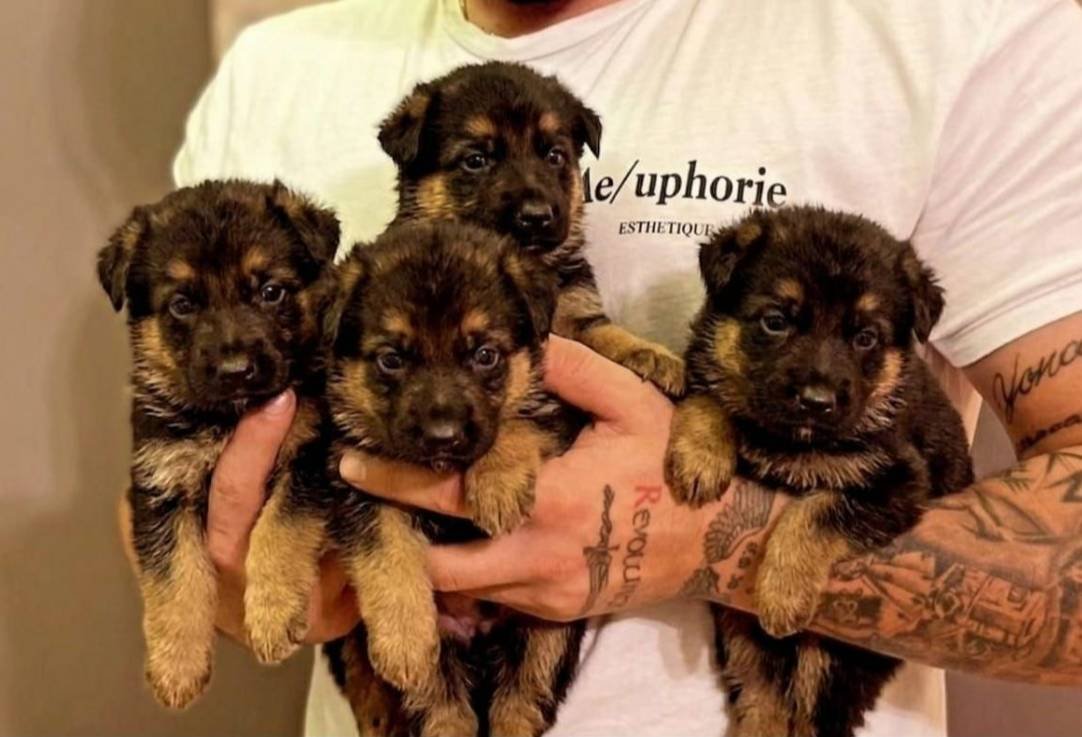 Simsiyah maskeli, küt burunlu bu Alman Kurdu yavruları gerçekten çok iştahlı ve hareketli.
