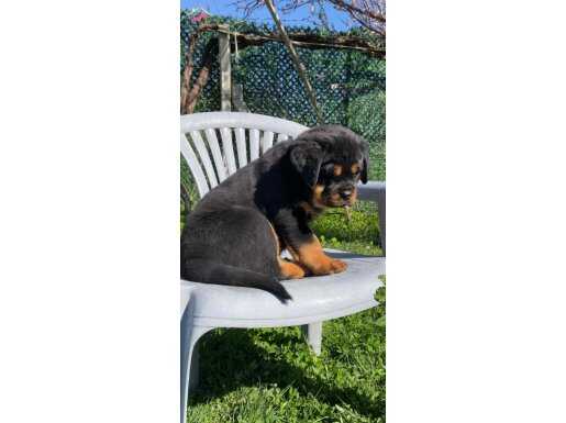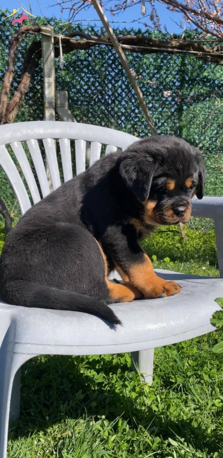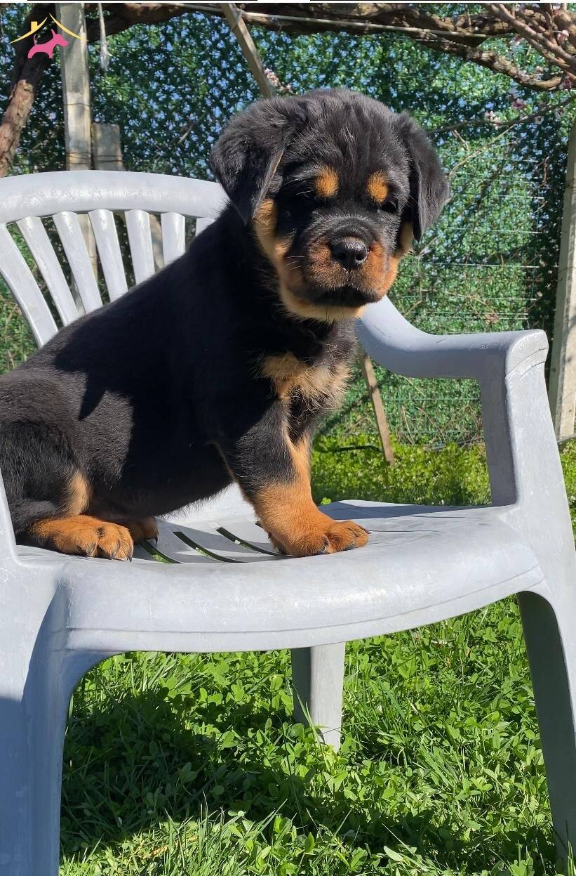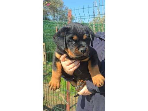İzmir Kemalpaşa’da yetişen, koca kafa yapısıyla hayran bırakan küt burunlu Rottweiler yavrularımız yeni yuvalarını bekliyor.