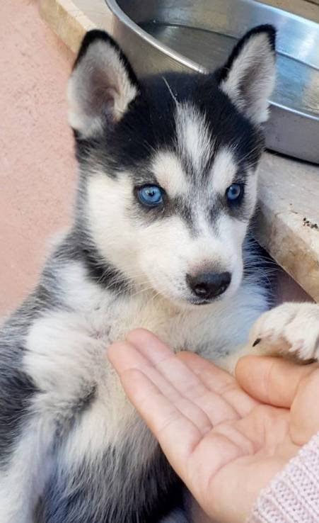 Gerçekten cam gibi mavi gözlü, yerinde duramayan safkan Husky yavrularımız yeni yuvasını bekliyor.