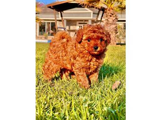 Çok tatlı, oyuncu ve kıvırcık tüylü minik kahverengi poodle yavrumuz yeni yuvasını bekliyor.