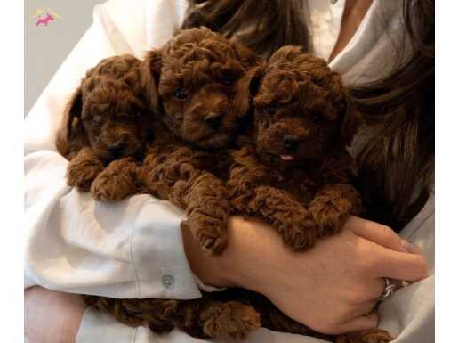 Redbrown oyuncak boy Toy Poodle bebeklerimiz Bakanlık onaylı çiftlik ortamında bakımları özenle yapılarak büyümüş olup çok temiz ve güzeller.