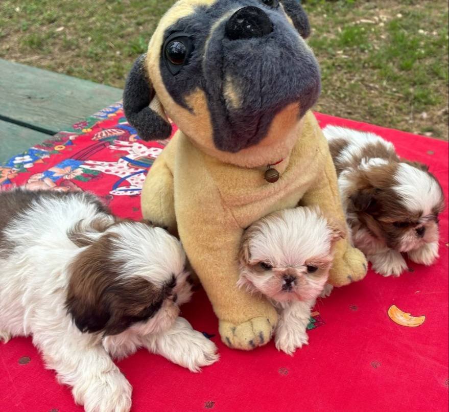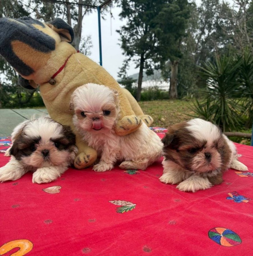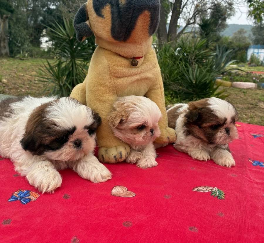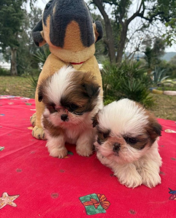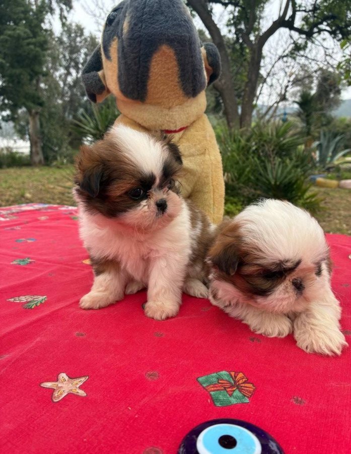 Veteriner hekimimizce günü gelen iç dış parazit ve aşı uygulamaları yapılmış 2 aylık Shih Tzu yavrularımız sağlık karnesi ve ırk garantisiyle gitmeye hazır.