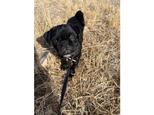 3 aylik siyah pug sosyal olarak baktik cok tatlidir sevecen biraz şımarık.