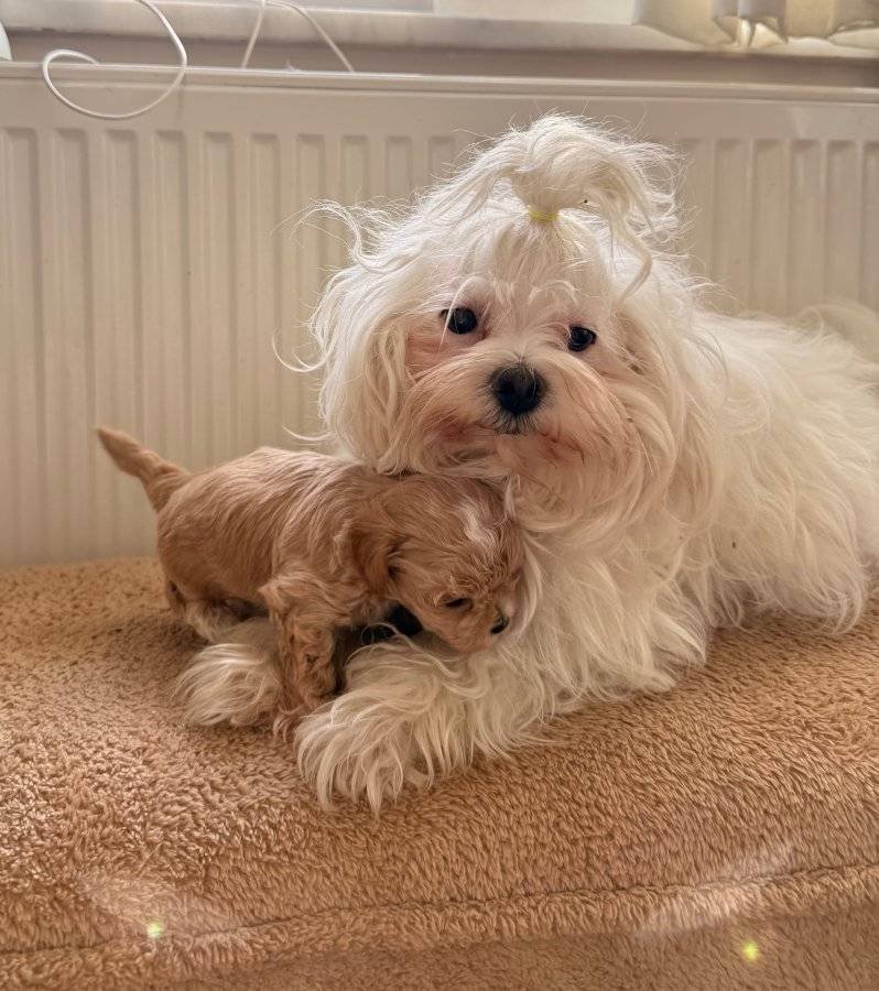 Anne ve babası 1.6 kg olan bu Maltipoo bebekler, ev ortamında sevgiyle büyüdü.