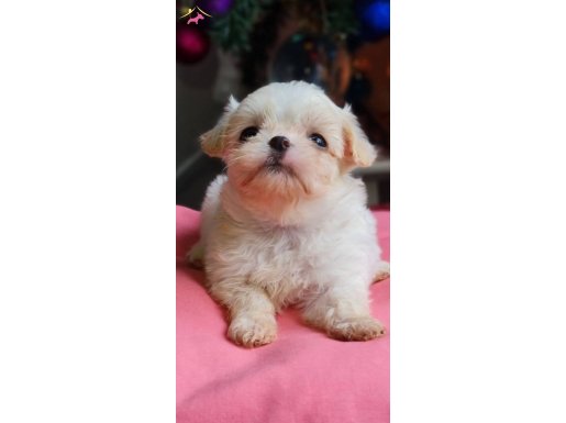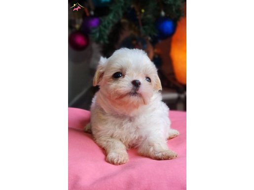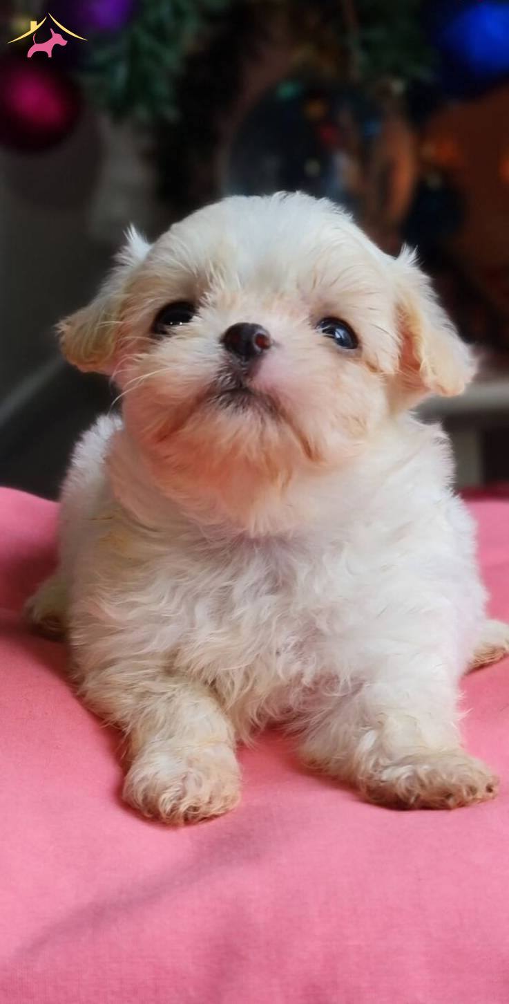 Anne orijinal Morkie, baba Kore Maltese olan bu buğulu bakışlı fındık kurdu ipek tüyleriyle tam bir sevgi yumağıdır.