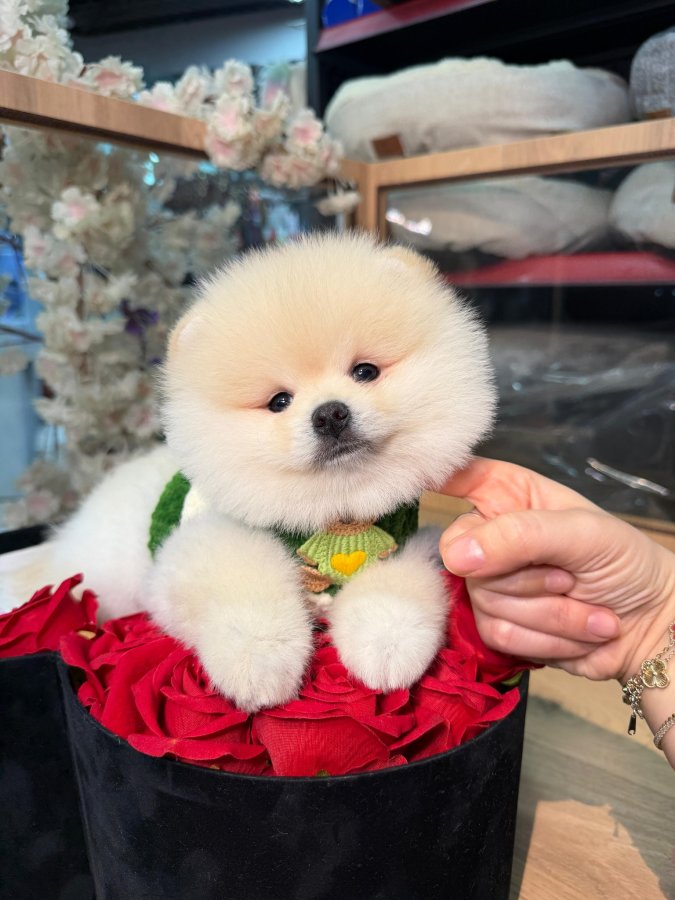 Hayatınıza neşe katacak bu güler yüzlü Pomeranian Boo, ipeksi kürkü ve minicik yapısıyla tam bir sevgi yumağı.