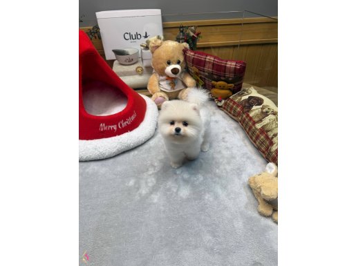 Beyazın en saf haliyle tanışın; küt burun yapısı ve ipeksi yoğun kürk dokusuyla bu üç aylık Pomeranian Boo, mikro boyutları ve karakteristik neşeli tavrıyla yaşam alanınıza bambaşka bir enerji katmaya hazır.