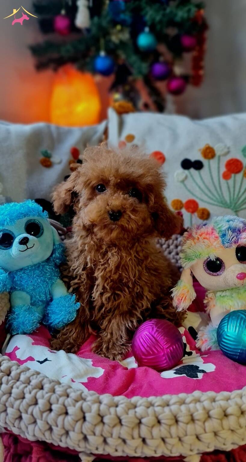 Kızıl kahve, dark brown çok sevimli teacup Poodle bebeklerimiz kalitenin Nirvana’sı olup yeni ailesi ile buluşmayı bekliyor.