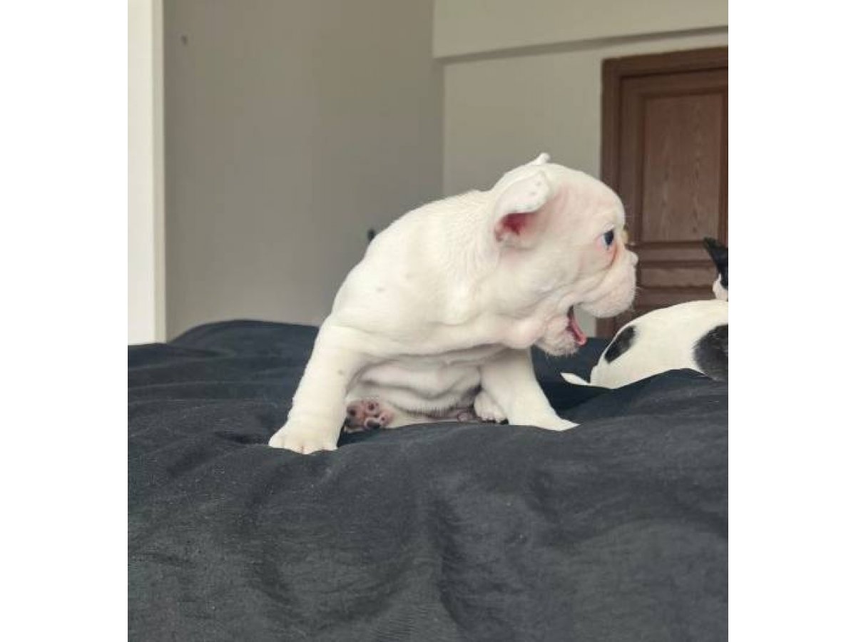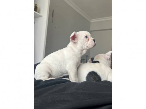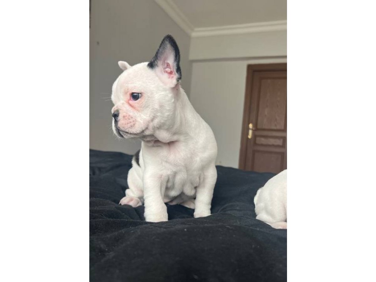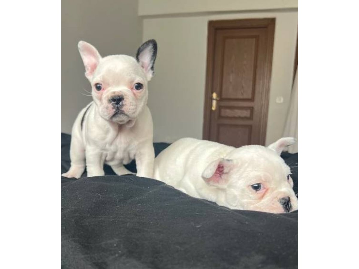 Aşıları tam, sağlık garantili bembeyaz French Bulldog kızlarım, havlamaz, eşyaya zarar vermez, çocuklarla ve kedilerle mükemmel anlaşır.