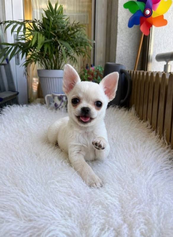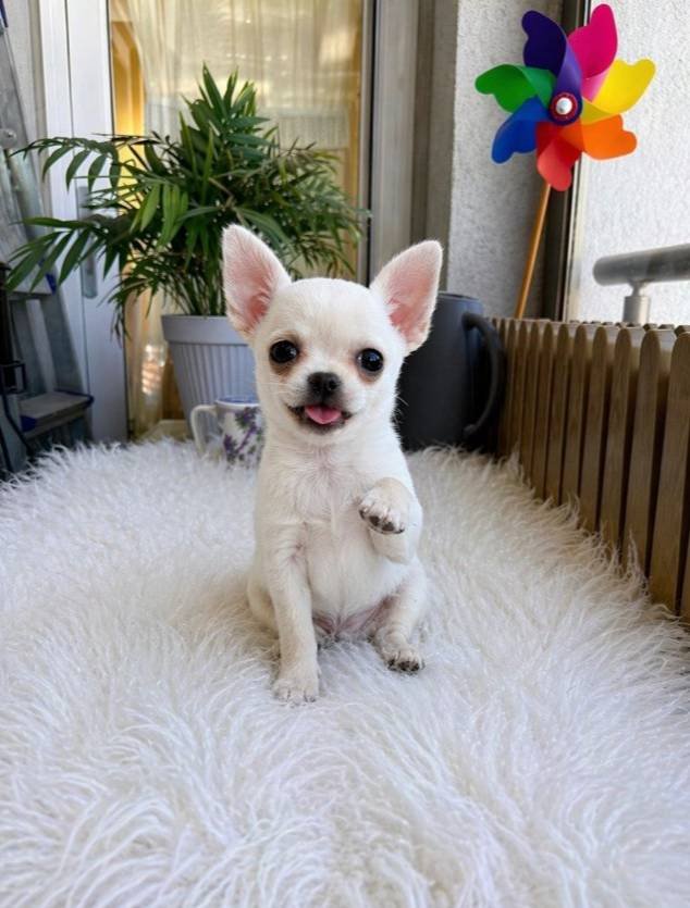 İstanbul Bahçelievler lokasyonunda, patisiyle selam veren bu kar beyazı Chihuahua ufaklığı yeni yuvasını bekliyor.