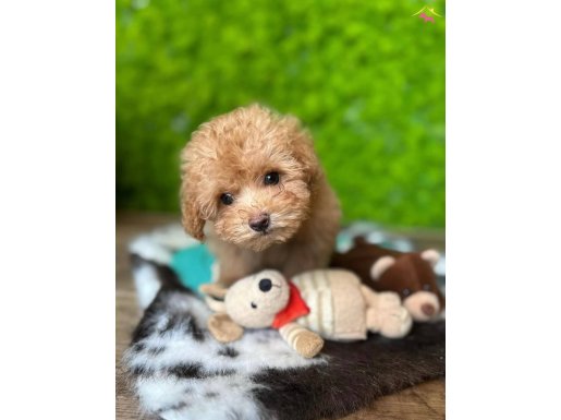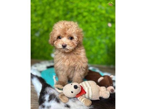 Siyah boncuk gözlü apricot renk tüy topağı Maltipoo bebeklerimiz oyuncak güzelliğinde olup yeni evine gitmeyi bekliyor.