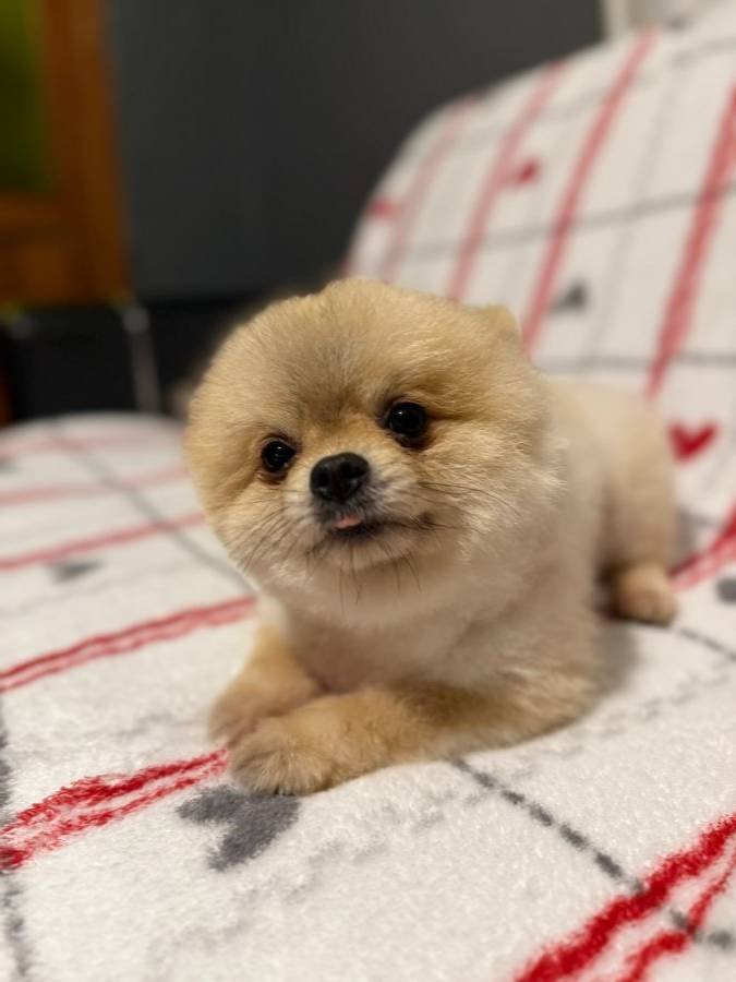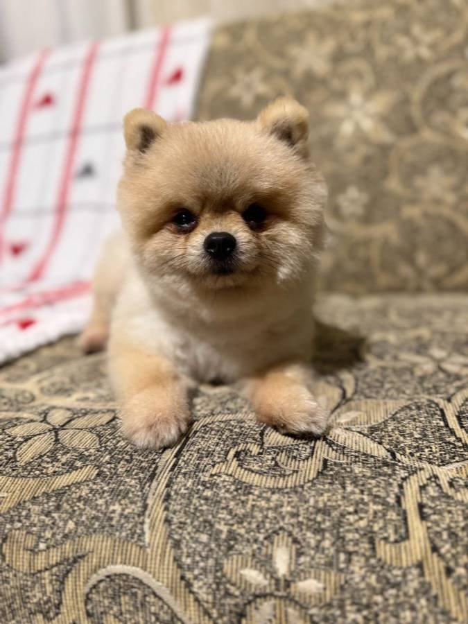 Çantaya sığacak kadar teacup boyutta Pomeranian Boo, aşılı, çipli ve kısır değildir.